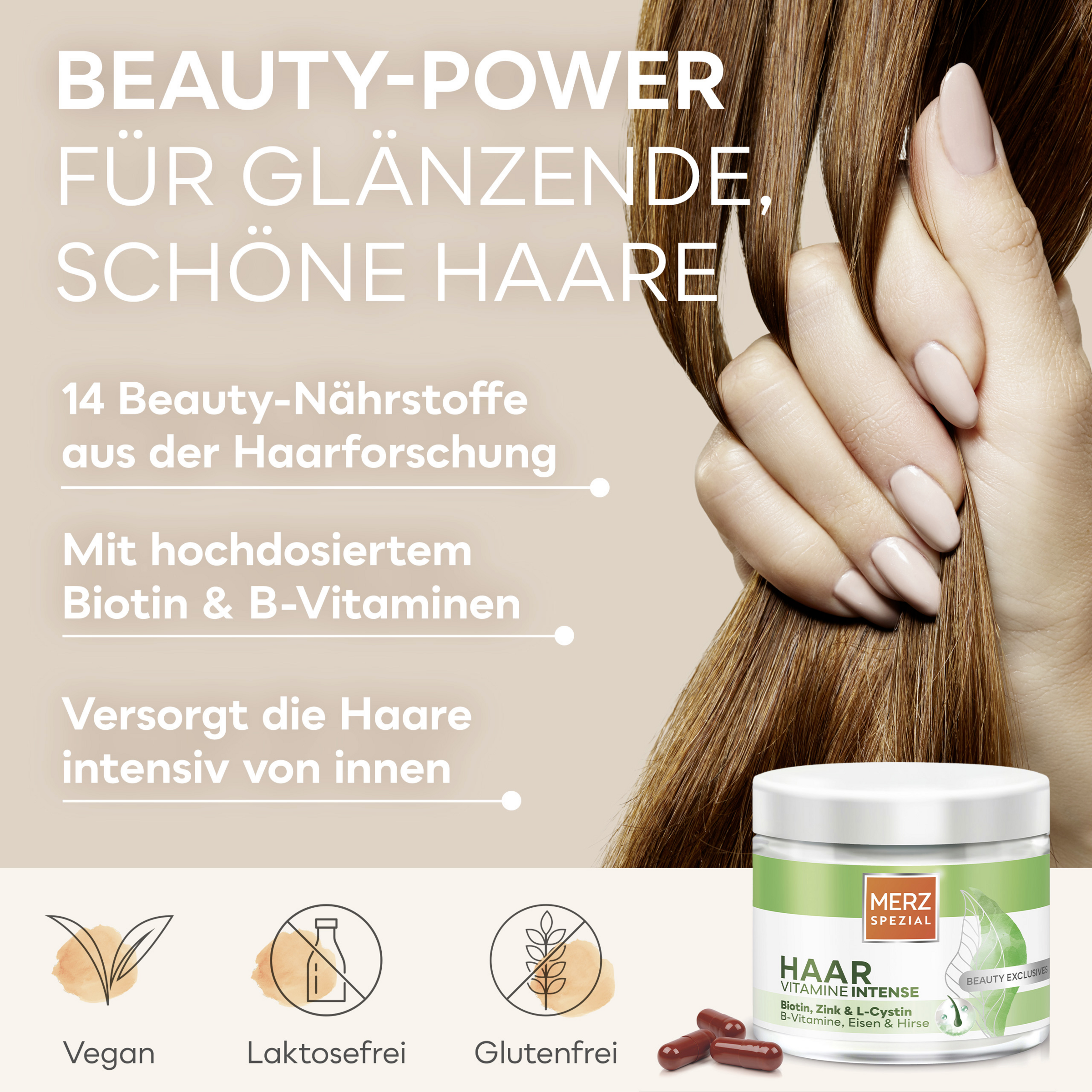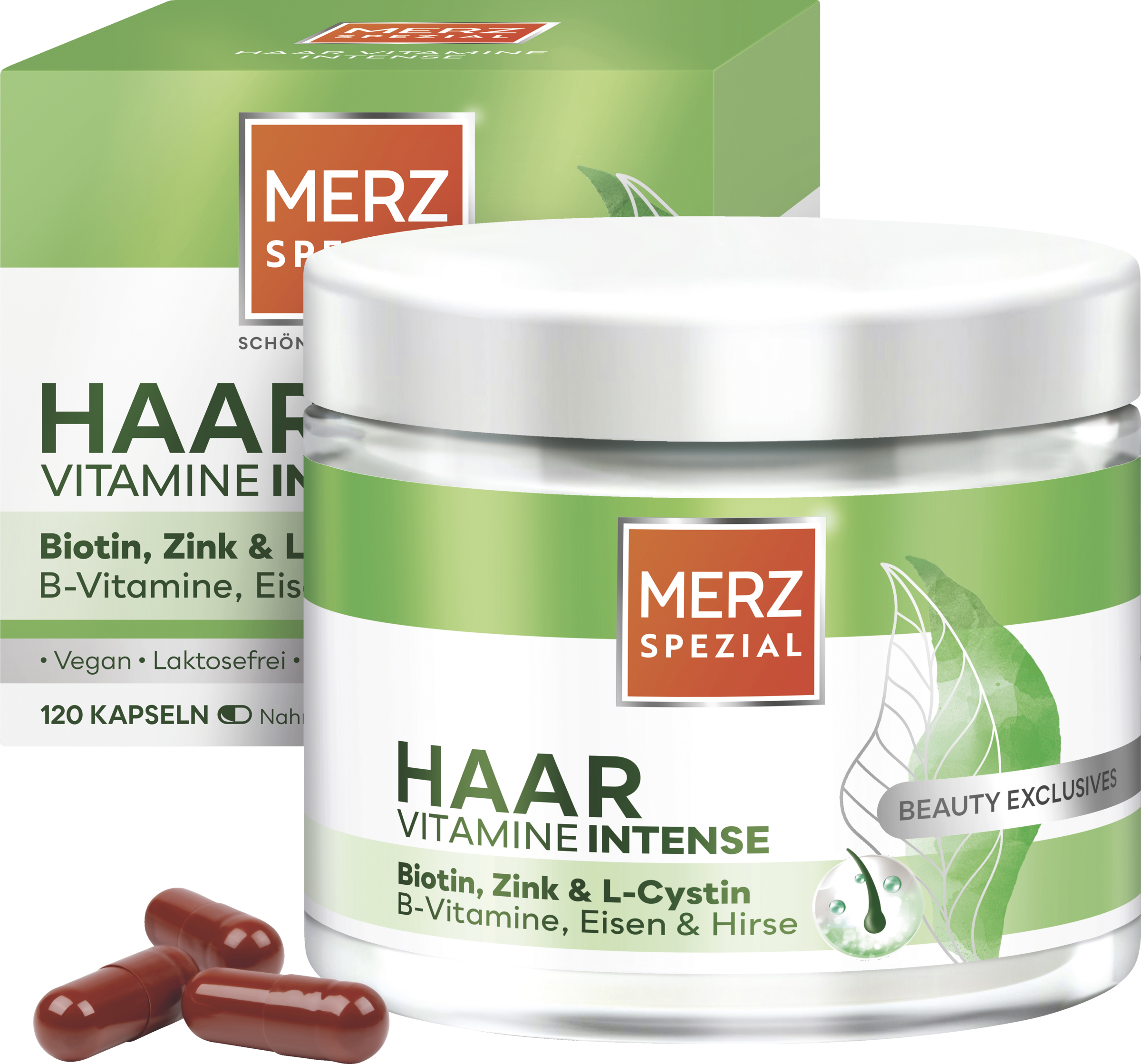 Merz Spezial 헤어 비타민 인텐스는 엄선된 영양소 조합으로 모발에 집중적으로 영양을 공급하여